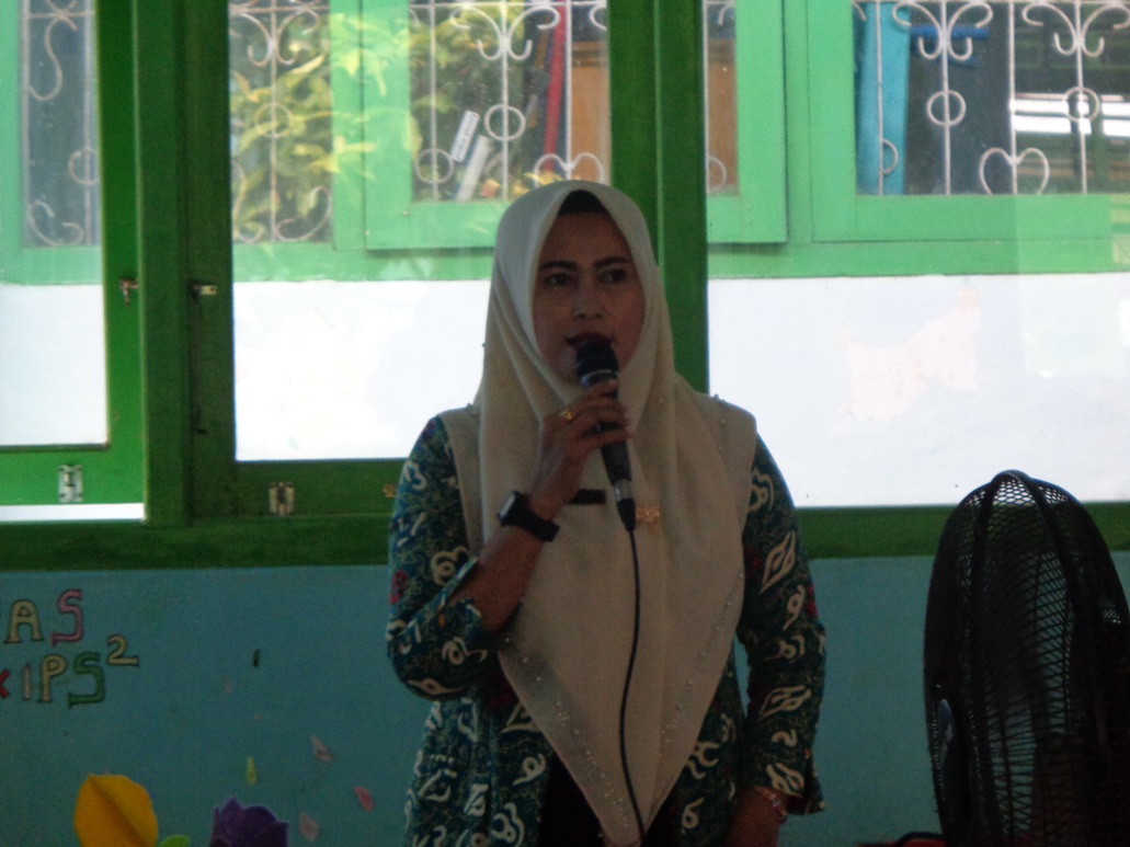 Pemateri pertama pada kegiatan Diseminasi Pengelolaan UKS SMA/SMK sekabupaten Bengkulu Tengah di SMAN 3 Bengkulu Tengah dari Dinas Kesehatan Bengkulu Tengah. Ibu Ida Riyani, SST Kasie promosi kesehatan dan pemberdayaan masyarakat Dinas Kesehatan Bengkulu Tengah.