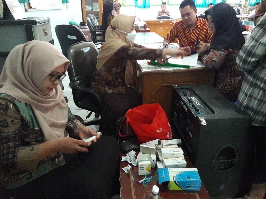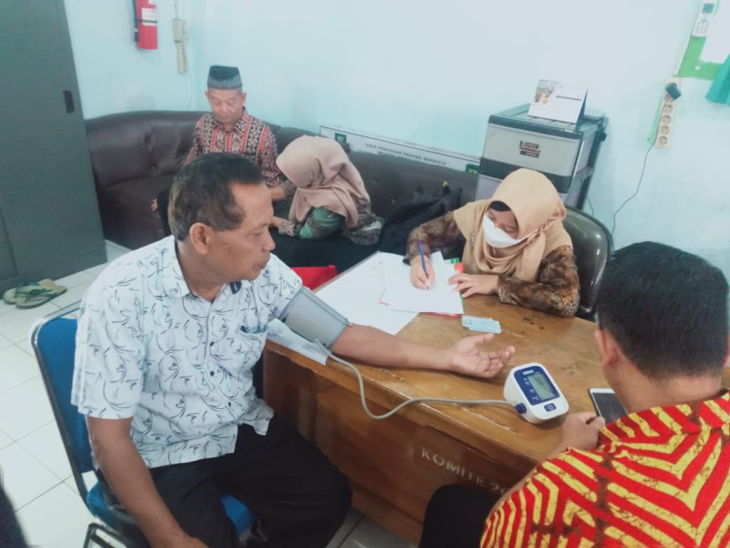 PEMERIKSAAN KESEHATAN RUTIN GURU DAN STAF TATA USAHA SMAN 3 BENGKULU TENGAH OLEH PUSKESMAS PEKIK NYARING