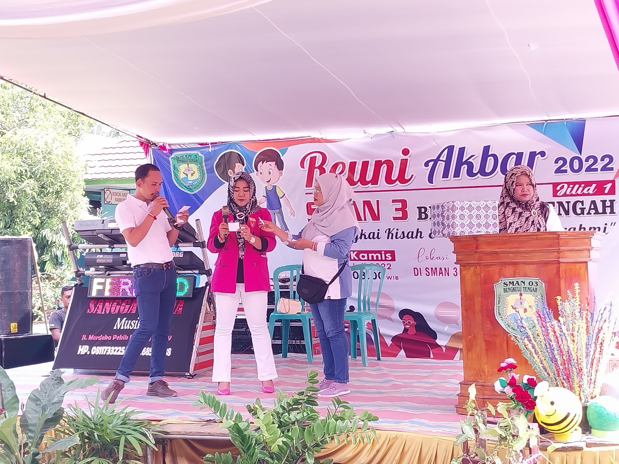 Kamis, 14 Juli 2022, Reuni Akbar Jilid 1 SMAN 1 Pondok Kelapa/SMAN 3 Bengkulu Tengah diadakan pada Hari kamis, 14 Juli 2022 bertempat dilapangan SMAN 3 Bengkulu Tengah. Acara reuni ini dihadiri oleh para alumni mulai dari angkatan tahun 1994 hingga tahun 2021 dan juga dihadiri oleh para Kepala Sekolah yang pernah menjabat serta dewan Guru yang pernah bertugas di SMAN 3 Bengkulu Tengah atau yang dulunya bernama SMAN 1 Pondok Kelapa Sejak Tahun 1992. Nampak Suasana kegembiraan dan keakraban dalam kegiatan ini. Para Alumni yang dapat bertemu kembali dengan kawan-kawan satu angkatan atau dengan kakak kelas dan adik kelas setelah bertahun-tahun berpisah dalam kegiatan ini tentu dapat meluapkan rasa kangen dan rindu mereka serta mengingat kembali masa-masa indah saat dibangku Sekolah Dahulu. Apalagi para alumni juga dapat bertemu dengan Bapak/Ibu guru yang pernah mengajar dan mendidik mereka dahulu, salam penghormatan menjadi pemandangan yang indah dalam momen ini. Terasa sungguh tepat sekali tema “Merangkai Kisah dan Menjalin Silaturahmi”, yang diangkat dalam acara Reuni Akbar Jilid 1 ini.