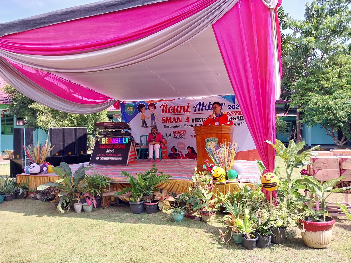 Selain Para dewan guru, Kepala Sekolah yang pernah menjabat dan Para Alumni, kegiatan ini juga dihadiri oleh Ketua DPRD Provinsi Bengkulu, Ikhsan Fajri S. Sos, MM dan Ketua Komisi 2 DPRD Provinsi Bengkulu, Jonaidi SP. Dalam kata sambutannya Kepala SMAN 3 Bengkulu Tengah, Enton Apiri, S.Pd mengucapkan terimaksih dan Apresiasi kepada Para Alumni yang proaktif mulai dari merencanakan, hingga terlaksananya Reuni Jilid 1 ini, beliau juga berharap para Alumni dapat bersinergi dan mendukung cita-cita sekolah yang masih belum terlaksana, “ SMAN 3 Bengkulu Tengah ini terus mengalami pekembangan dan kemajuan baik dari segi bangunan fisik maupun sumber daya manusianya, “Kita memiliki lebih dari 860 siswa mulai dari kelas X hingga kelas XII, namun demikian masih ada sarana dan prasarana penunjang yang dibutuhkan oleh sekolah dan belum terealisasi, “Sekolah sangat membutuhkan satu Gedung atau ruang serbaguna yang dapat menampung dan memadai untuk beragam kegiatan siswa dan sekolah, “Ini sungguh menjadi cita-cita yang diharapkan dapat menjadi nyata”, oleh karena itu beliau mengajak para Alumni untuk membantu mewujudkan harapan dan cita-cita sekolah tersebut.