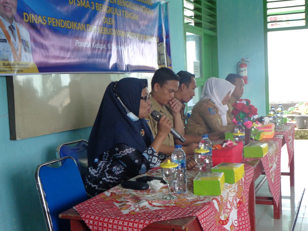 Dalam rangka penguatan tata kelola persuratan dan pengarsipan Dinas Pendidikan dan Kebudayaan Provinsi Bengkulu yang di selenggarakan di aula dan laboratorium komputer SMAN 3 Bengkulu Tengah sebagai bagian dari pelaksanaan amanat peraturan Presiden nomor 95 tahun 2018 tentang Sistem Pemerintahan Berbasis Elektronik (SPBE) untuk mewujudkan tata kelola pemerintahan yang bersih, efektif, transparan, dan akuntabel serta pelayanan publik yang berkualitas dan terpercaya.
