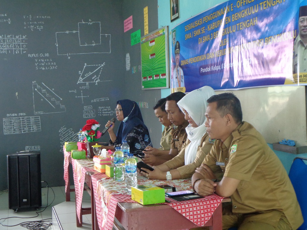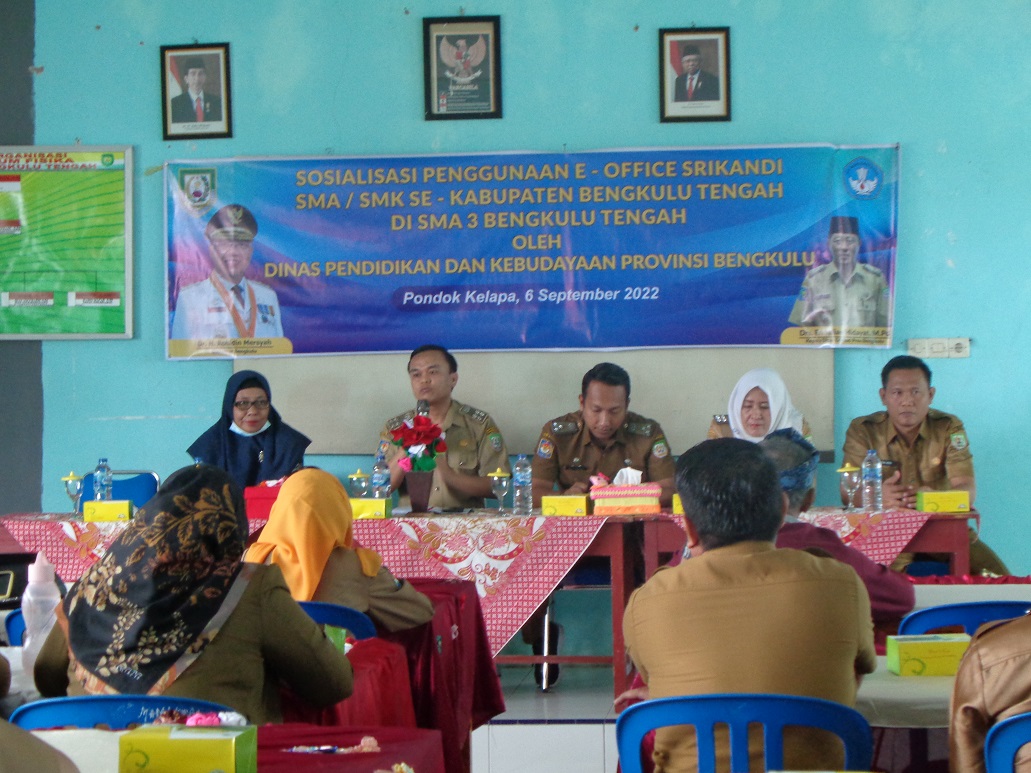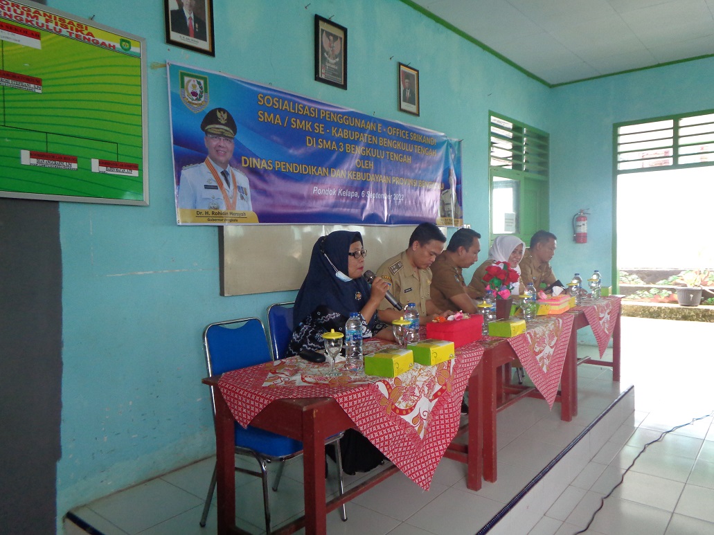 SOAIALISASI PENGGUNAAN E-OFFICE SRIKANDI SMA/SMK SE-KABUPATEN BENGKULU TENGAH DI SMA NEGERI 3 BENGKULU TENGAH OLEH DINAS PENDIDIKAN DAN KEBUDAYAAN PROVINSI BENGKULU